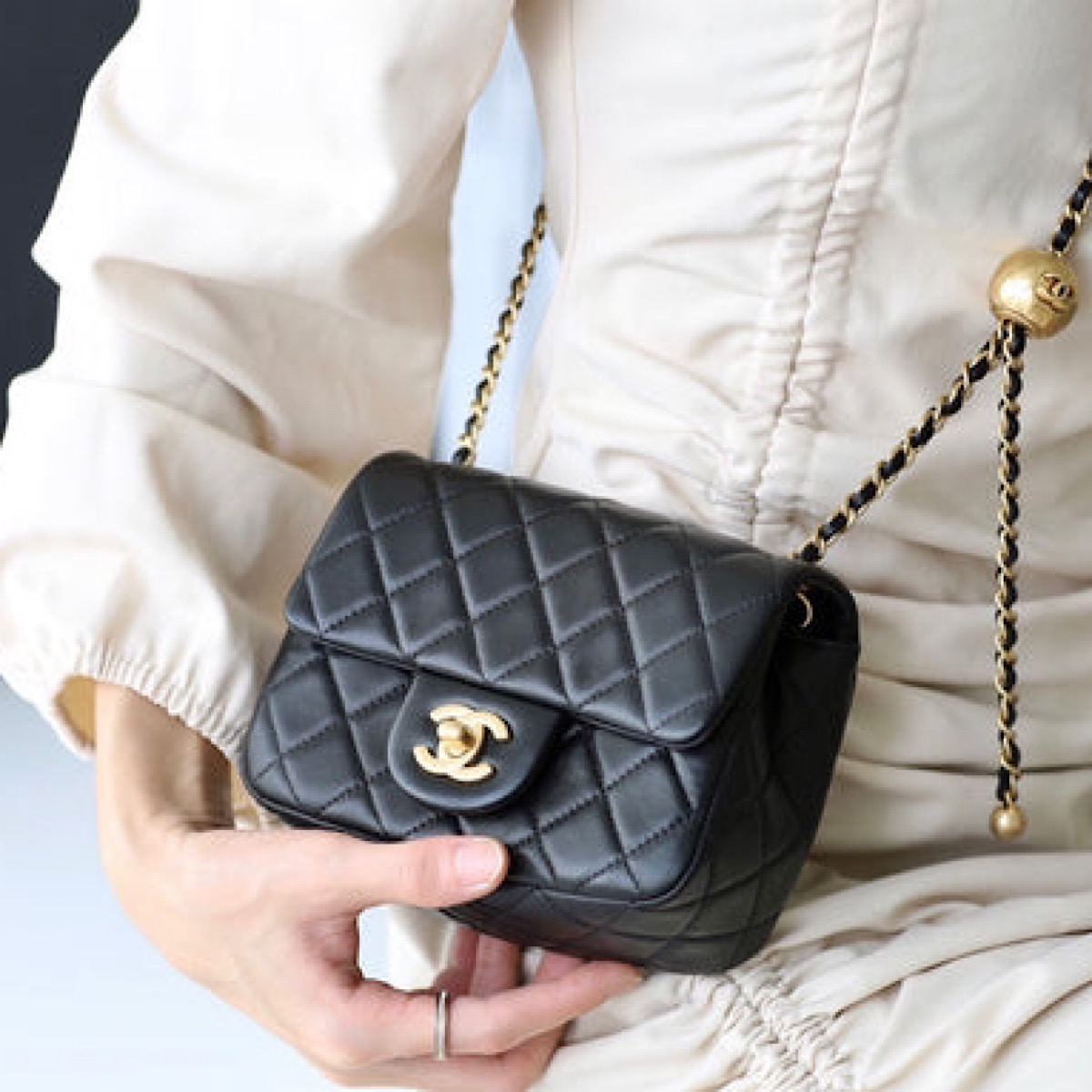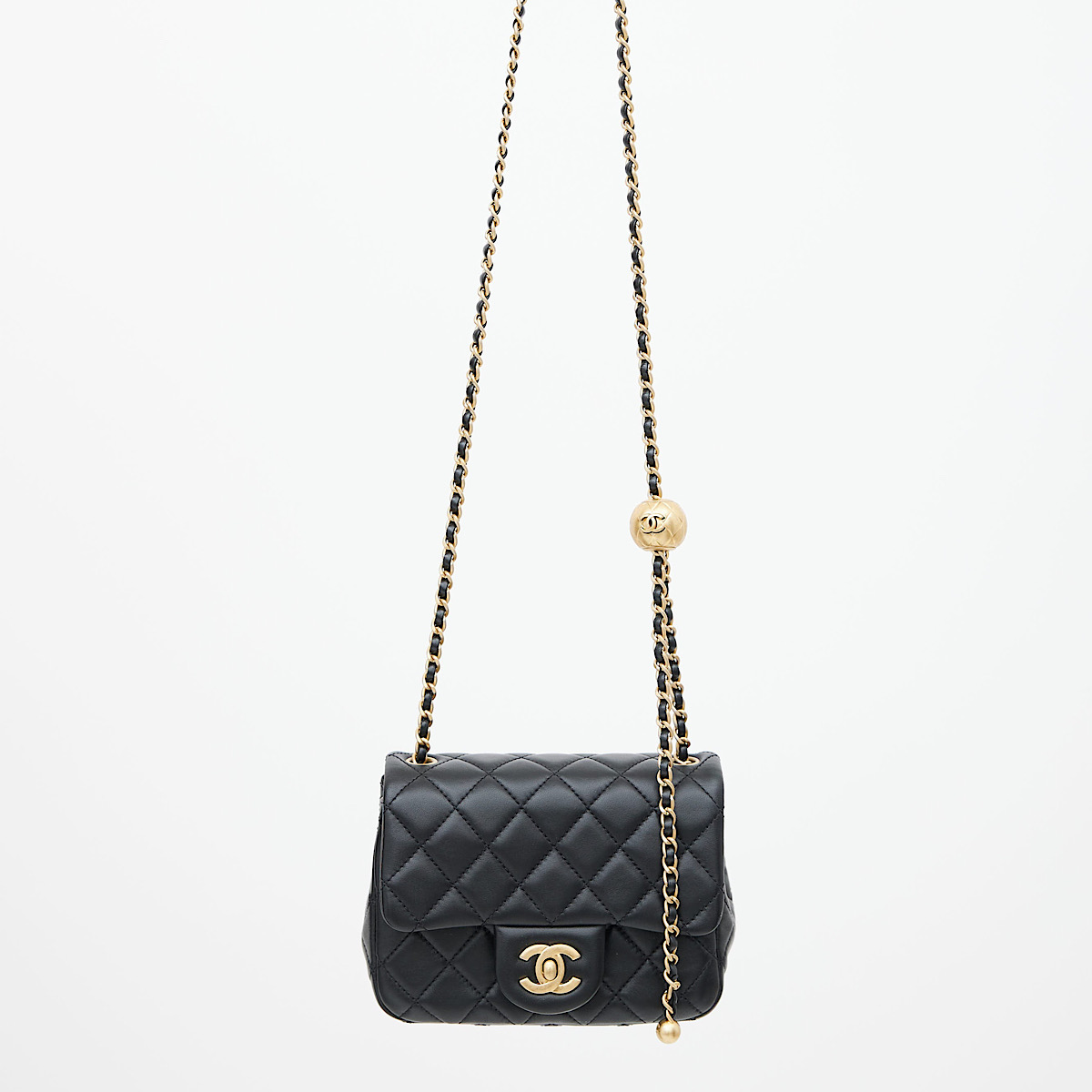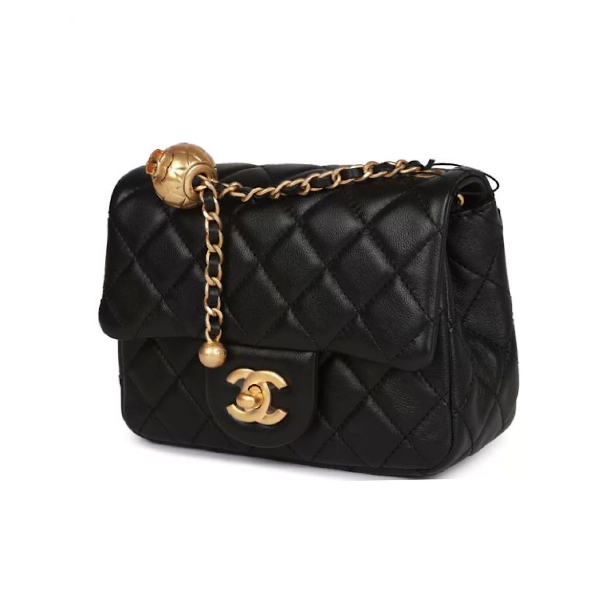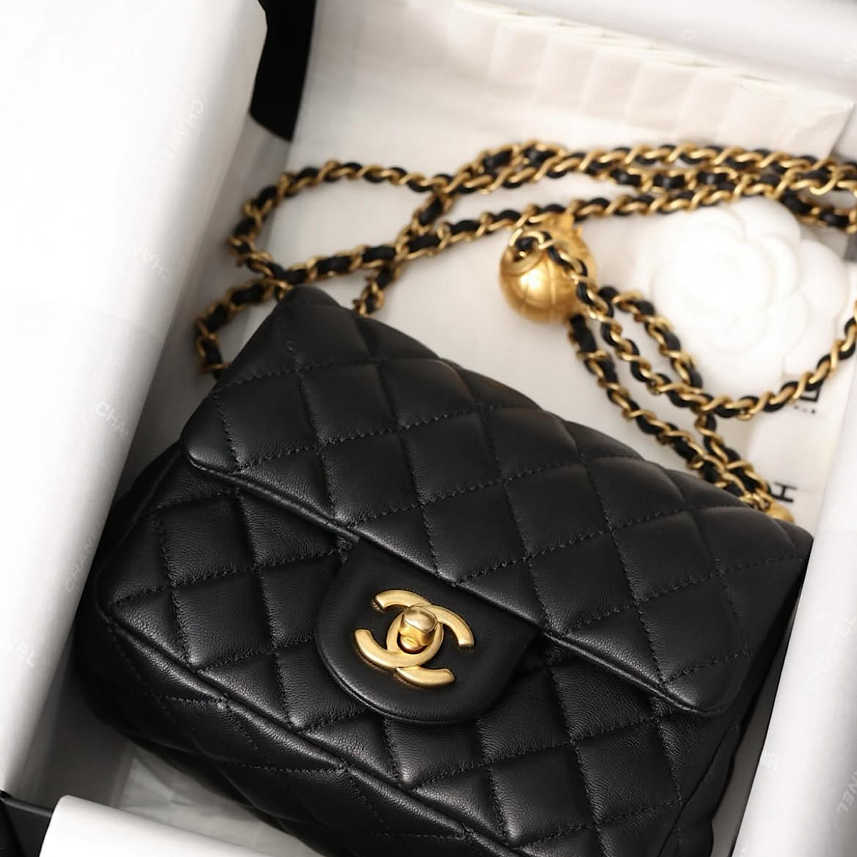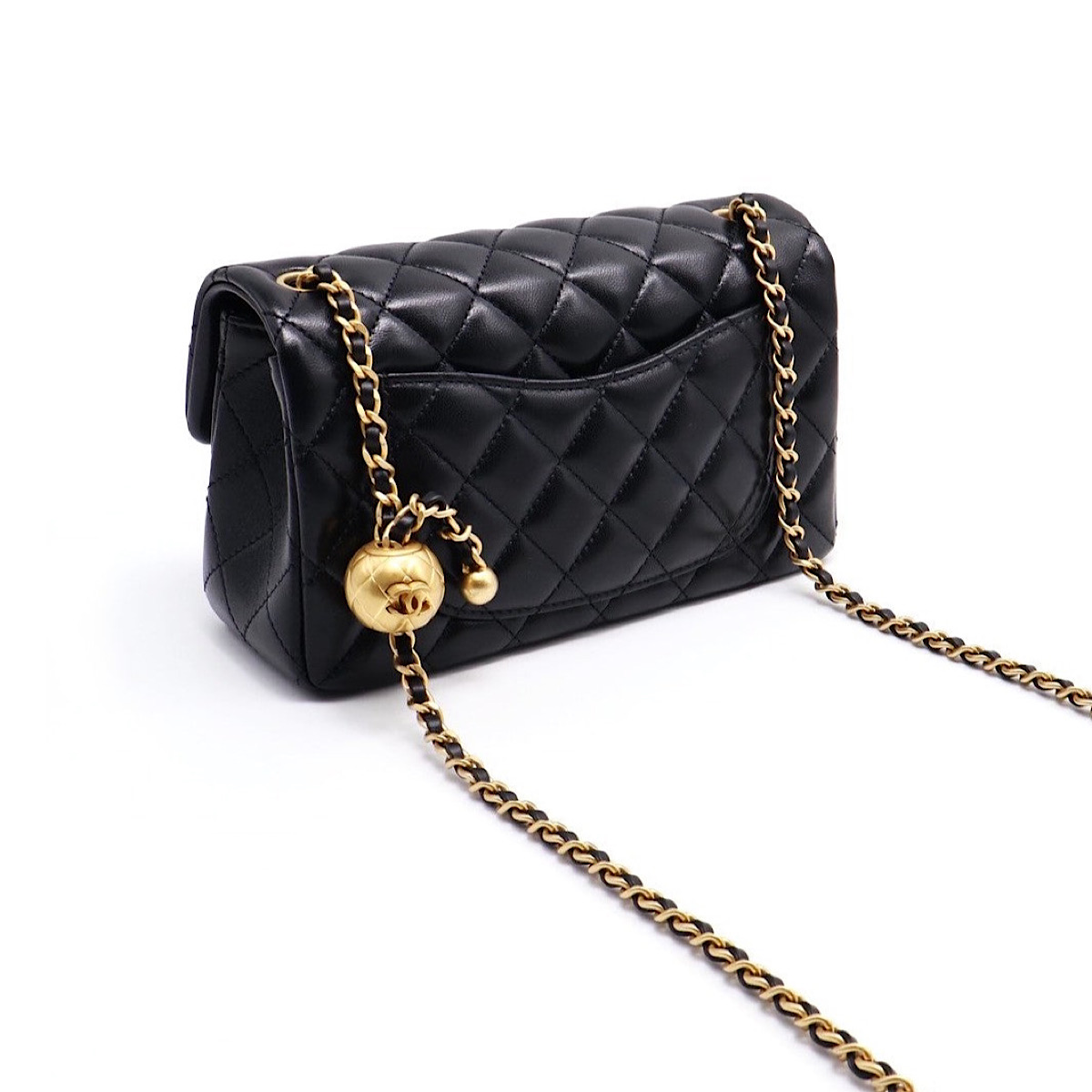 CHANEL CLASSIC FLAP W PEARL CRUSH BALL - BLACK